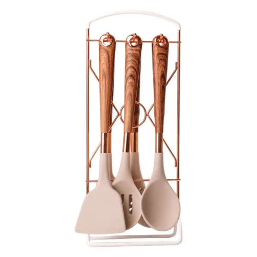 Набор кухонных принадлежностей на подставке включает шесть стильных аксессуаров: поварскую ложку, шумовку, ложку для спагетти, кухонную лопатку, ложку для салата. Этот элегантный комплект не только выглядит стильно, но и приятен на ощупь, добавляя современный акцент в вашу кухню. Удобная подставка позволяет организовать и легко достать необходимые инструменты, поддерживая порядок на кухне. Набор длиной 32,5 см станет не только функциональным, но и декоративным дополнением вашего кухонного интерьера. Преимущества: Стильный дизайн для элегантного вида Высокий уровень комфорта и функциональности Удобная подставка для организации Характеристики: Включает: поварскую ложку, шумовку, ложку для спагетти, кухонную лопатку, ложку для салата, подставку Длина приборов: 32,5 см Уход: Не мойте в посудомоечной машине Используйте мягкие моющие средства Тщательно высушивайте после мытья Храните в сухом месте