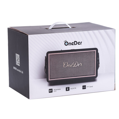 ОпDer D6 - это портативная колонка мощностью 40 Вт, которая идеально подходит для использования дома или в дороге. Она имеет ретро-дизайн, который выглядит стильно и изысканно. Колонка оснащена Bluetooth 5.0, что позволяет подключать ее к смартфонам, планшетам и другим устройствам для беспроводного воспроизведения музыки. Она также имеет слот для карт TF, порт USB и вход AUX, что позволяет слушать музыку из разных источников. Кроме того, колонка OneDer D6 имеет встроенный микрофон, что делает ее удобной для использования в качестве громкоговорителя. Она оборудована светодиодным индикатором, который показывает состояние батареи и подключения. Колонка OneDer D6 имеет громкий и чистый звук, а также стильный дизайн. Характеристики: Цвет: Коричневый Материал корпуса: Пластик Вес: 2.3 кг Мощность: 40 Вт Частотный диапазон: 80 Гц - 20 кГц Соотношение сигнал/шум: ≥ 75 дБ Встроенный аккумулятор: 5000 мАч Время работы: до 4-6 часов Время зарядки: 4-5 часов