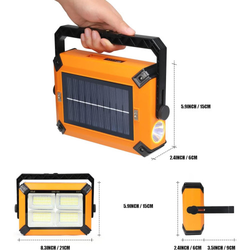 Описание Фонарь-прожектор переносной, мощный светильник для дома и выездов на природу. Переносной прожектор с функцией Power Bank будет полезным ассистентом и дома, и на отдыхе и на работе. Фонарь оснащен яркими LED светодиодами, которые дают очень яркий свет, а приятным бонусом является наличие разъема USB для зарядки смартфона. Корпус изготовлен из высококачественного пластика. Удобная ручка-перенос. Питание от встроенного аккумулятора, который можно зарядить от розетки 220 В или с помощью солнечной панели, расположенной на обороте прожектора. А на задней панели есть USB-выход, к которому можно подключать мобильные портативные устройства для их подзарядки. Характеристики Мощность: 30 Вт. Тип лампы: светодиодная Тип заряда: от сети, от солнечной панели Режимы свечения фонаря: 3 режима яркости, мигания и аварийный. Время работы: до 6 часов Уровень защиты: IP65 (6 – полная защита от проникновения пыли; 5 – защита от струй воды по всем направлениям) Световой поток: 1000 люмен (близкий к яркости как 100W лампочки) Комплектация Прожектор фонарь на солнечной батарее. Кабель для подзарядки. Упаковка.