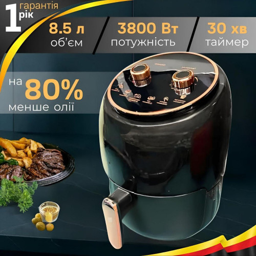 Это мощное устройство на 3800 Вт с низким потреблением жира разогревается только через 2–3 минуты благодаря технологии быстрой циркуляции горячего воздуха. Он готовит кушанья гораздо быстрее, чем обычная духовка, что делает его идеальным решением для занятых семей. К тому же вы сможете сэкономить не только время, но и средства на электроэнергии.