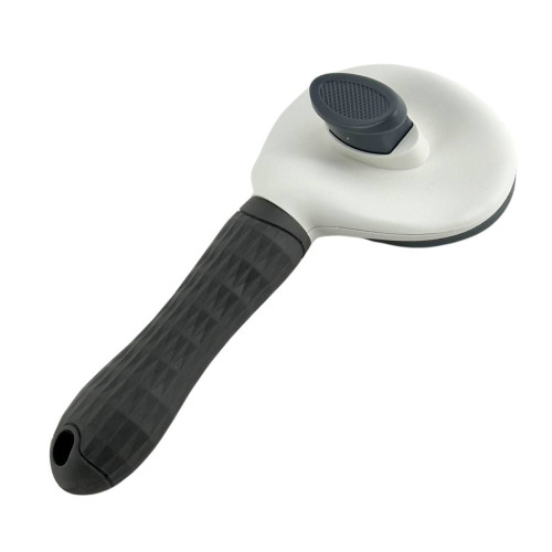 Щітка-пуходерка з гумовою ручкою — ідеальний аксесуар для догляду за шерстю домашніх тварин. Металеві зубці із заокругленими кінцями дбайливо видаляють випалу шерсть та підшерсток, не травмуючи шкіру улюбленця. Ергономічна гумова ручка забезпечує надійний хват, а кнопка на звороті дозволяє легко очистити щітку одним натисканням. Підходить для щоденного грумінгу котів і собак будь-яких порід.