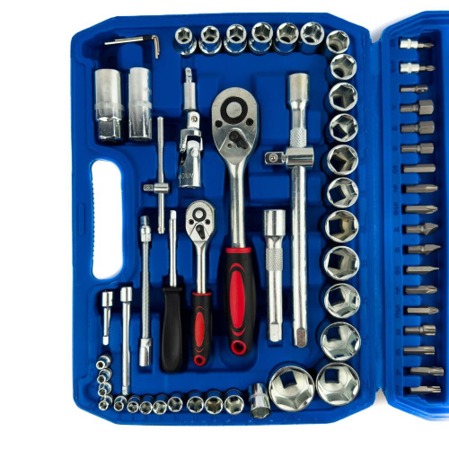 Набір інструментів New Tools з 94 предметів можна з повною впевненістю назвати універсальним. У комплект входять практично всі необхідні інструменти, як головки так і біти, які пригодяться при ремонті автомобіля самостійно. Виготовлений із легованої хром-ванадієвої сталі за технологією, яка дозволяє застосовувати високі навантаження. Головки мають компенсатор напруги. Бензомаслостійкі та стійкі до стирання двокомпонентні рукоятки забезпечують надійне захоплення інструменту при роботі. Надійний хром-молібденовий храповий механізм. Трискачки забезпечені зручною кнопкою для швидкого кріплення та зняття насадок. Три варіанти роботи тріскачок: вперед, назад, холостий хід. До набору входять: 1/4" торцеві шестигранні головки (4, 4.5, 5, 5.5, 5.5, 6-14 мм); 1/2" торцеві шестигранні головки (10-27, 30, 32 мм); торцеві головки подовжені (14, 15, 17, 19 мм); торцеві головки подовжені (6-13 мм); торцева головка із битою SL (4, 5.5, 7); торцева головка з битою HEX (3, 4, 5, 6); торцева головка з битою PH (1, 2), PZ (1, 2); торцева головка з битою TORX (8, 10,15, 20, 25, 30); біти SL (8,10,12), HEX (8,10,12,14), PH (3, 4), PZ (3, 4), TORX (40, 45, 50, 55); 1/2" тріскачка 45 зубів; 1/4" тріскачка 45 зубів; 1/2" утримувач біт; 1/2" подовжувач (250, 125 мм); 1/4" подовжувач(100, 50 мм); 1/4" головка-квадрат для т-подібних воріт; 1/4" вороток Т-подібний; 1/4", 1/2" кардан; 1/2" свічкова головка (16, 21 мм); адаптер для утримувача біт; гнучкий подовжувач 150 мм.