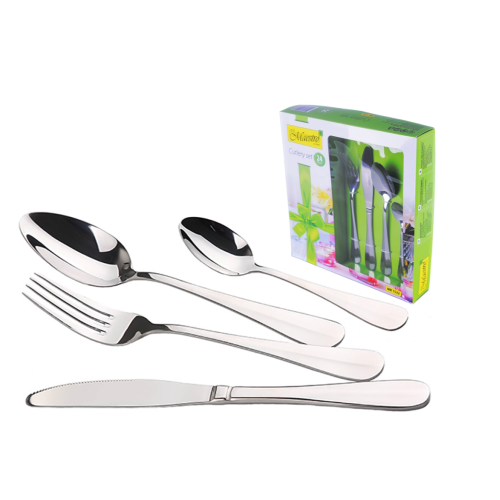 Комплектация | Набор состоит из: столовая ложка - 6 шт., столовая вилка - 6 шт., столовый нож - 6 шт., чайная ложка - 6 шт. |