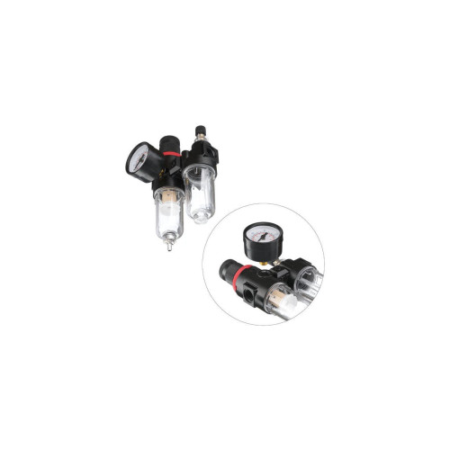 Блок подготовки воздуха 1/4”. Регулятор давления 0-12 атм. Рекомендуемое масло ISO VG 32. Температура внешней среды 5-60 град. Регулятор давления: 0-12 атм; Диаметр шланга: 6-8 мм; Диаметр резьбы: 1/4"; Температура внешней среды: 5-60 °С; Рекомендуемое масло: ISO VG 32; Расход воздуха: до 400 л/мин