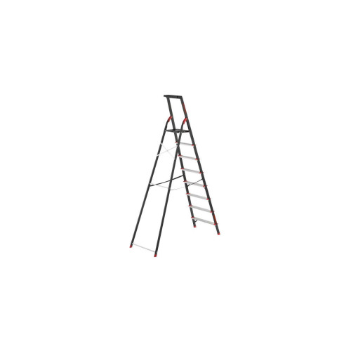 Стремянка со стальным профилем поможет в быту и на производстве. С ее помощью вы легко достанете до самых высоких шкафов, карнизов и окон. Просто необходимая вещь в саду или во время ремонта. Такая стремянка во множество раз надежней, чем табурет. Стальной профиль с безопасными ступенями Стремянка изготовлена из прочного стального профиля с алюминиевыми ступенями. Рифленые ступени не позволят скользить ноге и обеспечивают безопасный подъем, а также удобное положение во время работы. Стремянка соответствует европейскому стандарту EN131 и выдерживает нагрузку до 150 кг. Широкая верхняя ступень-платформа Изготовлена из стального профиля, имеет габариты 250*250 мм для комфортной работы на высоте. Позволяет безопасно находится на самой верхней точке стремянки. Лоток для инвентаря Поручни безопасности оснащены лотком для инвентаря для размещения негабаритного инструмента. Теперь у вас все под рукой и больше не нужно просить кого-то подавать вам отвертки, плоскогубцы или дрель. Противоскользящие опорные наконечники Прочно сцепляются с любыми поверхностями пола и не повреждают напольные покрытия. Стремянка стоит устойчиво и вы не боитесь упасть. Надежные защищенные соединения ступеней и профиля, поручни, стяжные профили и ремни делают конструкцию лестницы устойчивой и безопасной. Профиль: стальной прямоугольный; Количество ступеней: 8 ед.; Высота до платформы: 1720 мм; Максимальная нагрузка: 150 кг; Габариты в рабочем положении: 527х1437х2221 мм; Габариты в сложенном виде: 527х110х2410 мм
