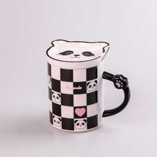Чашка порцелянова The Panda 350мл з блюдцем і ложкою Шахматка HPCY8369CH (LG-2028428270)