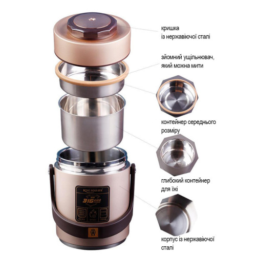 Термос для еды с 2 контейнерами на 1.5 литра - идеальное решение для тех, кто ценит вкус домашней еды. Термос имеет два отдельных отделения, что позволяет вам переносить разные блюда отдельно и сохранять их свежими и вкусными до момента перекуса. Основные характеристики объем 1.5 литра; 2 отделения для пищи; высота 19 см. Особенности Первые и вторые блюда останутся теплыми в течение до 12 часов благодаря инновационным двойным стенкам с минимальной теплопроводностью. Термос оснащен широким горлом, которое позволяет легко наполнять контейнеры первыми и вторыми блюдами. Два контейнера позволяют раздельно хранить разнообразные блюда, сохраняя их вкус и аромат. Этот термос идеально подходит для разнообразных мероприятий - от офисных перерывов до пикников и путешествий. Термос изготовлен из высококачественных материалов, гарантируя долгий срок службы и сохранение первозданной внешности. Термос для еды с 2 контейнерами на 1.5 л - это ваш надежный компаньон для создания домашнего уюта и вкуса в любых условиях. Наслаждайтесь теплом и вкусом своей еды вне зависимости от расстояния от дома, даря себе удовольствие и уверенность в качестве вашего приема пищи.