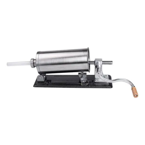 Ручной горизонтальный колбасный шприц — незаменимый инструмент для приготовления домашней колбасы и мясных изделий. Благодаря продуманному дизайну и качественным материалам, этот шприц идеально подходит как для домашнего использования, так и для небольших производств. Удобный в эксплуатации и легкий в обслуживании, он станет отличным помощником в приготовлении вкуснейших колбас. Основные характеристики: Размеры: 44 x 15 x 19 см; Объём цилиндра: 3 л; Количество насадок: 4 шт; Диаметр насадок: 14 мм, 18 мм, 22 мм, 26 мм; Диаметр цилиндра: 13 см; Материал корпуса: нержавеющая сталь; Материал насадок: пластик; Материал ручки: нержавеющая сталь + дерево; Крепление: струбцины для надежной фиксации шприца на рабочей поверхности; Ключ в комплекте: используется для закрепления шприца в корпусе и регулировки механизма для более удобного и безопасного процесса работы. Преимущества: Прочный металлический корпус устойчив к коррозии и механическим повреждениям; Нескользящее основание для надёжной фиксации на рабочей поверхности; Четыре сменные насадки позволяют готовить колбасы разных диаметров; Удобная ручка обеспечивает плавный и комфортный ход; Легко разбирается и очищается после использования. С шприцем для колбас вы легко превратите процесс приготовления в настоящее удовольствие. Он экономит время, упрощает работу с фаршем и позволяет добиться аккуратного, равномерного наполнения оболочки. Незаменимый инструмент для тех, кто ценит домашнее качество, натуральность и контроль над каждым ингредиентом.